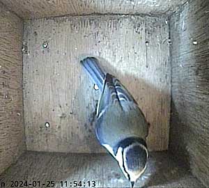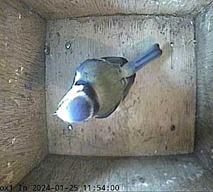 There were a few visits to Box1 today. However, so far we have not yet seen two birds in the box at the same time - a prerequisite for forming a pair.