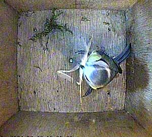 Despite the coal tit, Box2 seems to be spoken for. Here Lucy is doing another nesting wriggle.