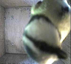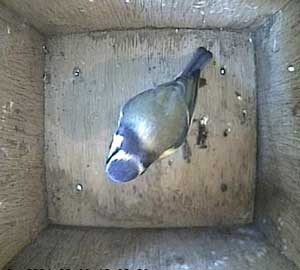 It actually goes into the nest box and if you look carefully, you can see its partner in the bottom right hand corner of the image. I wonder whether anything will come of that visit. If it did, it would be a first for our boxes!