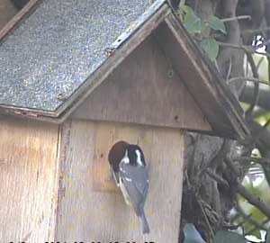 But what's this? Our nest boxes aren't typical coal tit nesting places, but here is a coal tit have a good look at Box2!