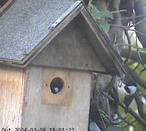 No bird has roosted in the box since Sunday 3rd March. However, we keep a watch out for this as I expect at some stage it will roost again.