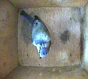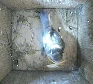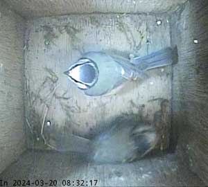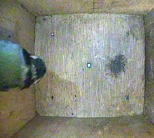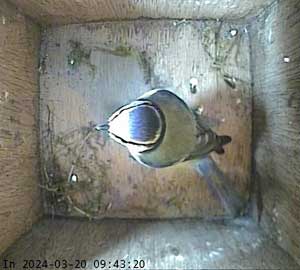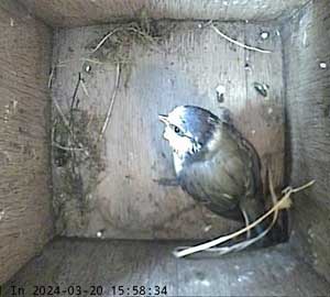 Over in Box2, There is still no nesting material. It doesn't look as though this bird is bringing any in either.