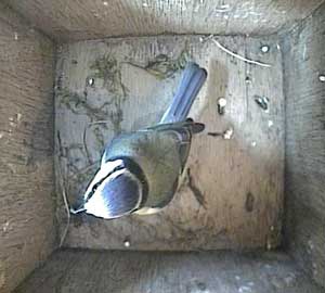 Although there is clearly more nesting material in the box than there was first thing, it doesn't seem to be filling very quickly.