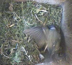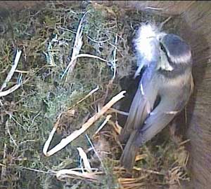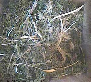 This is the first piece of fluffy stuff she has collected. She will need lots more to line the nest cup.