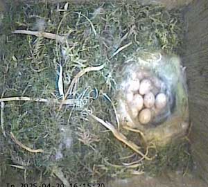 Meg started to incubate the eggs around midday on 16th April, so the chicks should start hatching on the 1st or 2nd May.