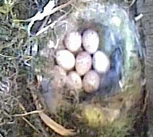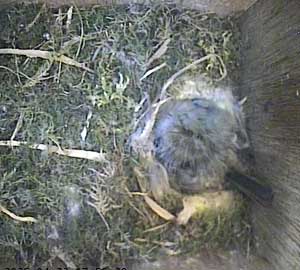 Clearly there is something outside the nest box that is upsetting Meg. See how she is holding a wing over the eggs to protect them.