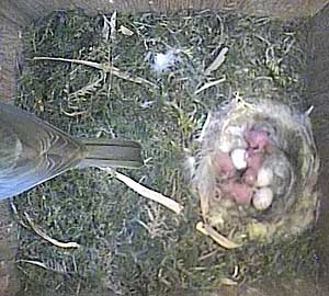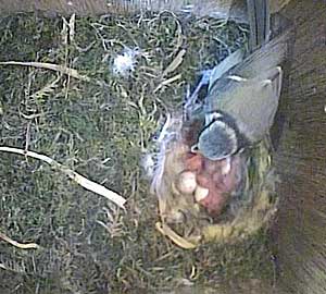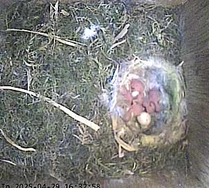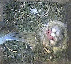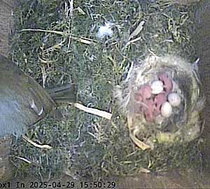 This picture, which was taken at half past six, shortly before the system is scheduled to shut down, shows that there are still three eggs that have not yet hatched.
