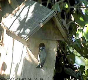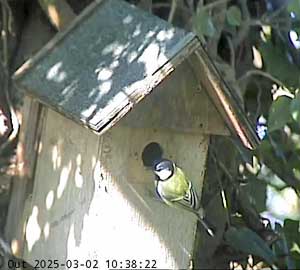 This year I have not replaced the bluetit sized metal entrance plate over the hole so any tit can get inside.