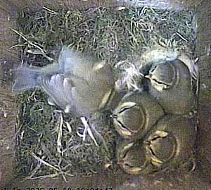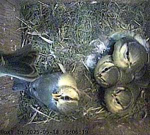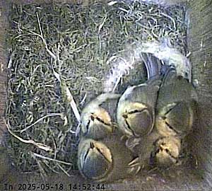 It's an hour since the last chick fledged, and there is no sign that any of these will leave the nest soon.