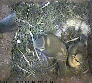Max is still coming with food. I suppose Meg has her beak full looking after the chicks that have now fledged.