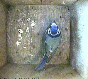 At half past eleven Box2 also had a visit from a bluetit today. This time it must have been a male.