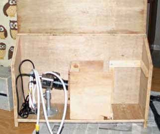After a few weeks, it became apparent that the bluetit that was a regular visitor to the new box, was getting increasingly worked up about its image in the glass plate. In addition, despite my treating it with something to make dirt less likely to stick, it had started to get dust on it. I therefore decided to try to design a structure that could be built without having the box to hand and then slotted into place when it had been completed. The purpose of this new structure was to keep any bird entering the box away from the camera area, and encourage it to nest at the right hand end of the box, without having to resort to a pane of glass. In the end, it didn't work out quite like that - some of my measurements must have been a bit too approximate, but I managed to keep the time the box was off the wall to a couple of hours in the morning.