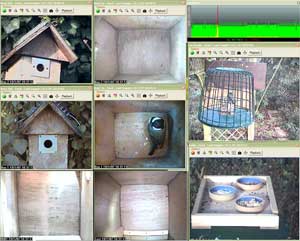Each of the nest boxes has an external camera pointed at the nest box hole so that we can see the comings and goings of the parent birds - and very briefly, the chicks when they fledge! Other cameras point to our bird table, a hedgehog feeding station, a fat block feeder at the bottom of the garden and one of our bird feeder poles.